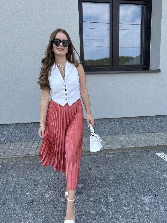 Medzi najlepšie a najdôležitejšie kúsky do horúcich dní podľa mňa patria určite ľanové veci – či už šaty alebo nohavice. Ľan je totiž veľmi príjemný, priedušný, elegantný a chladivý. Ak ti vadí 100% ľan, zvoľ kúsky s menším obsahom ľanu - budú mäkšie a menej sa krčia. Skvelou voľbou je aj saténová sukňa – ideálna na večer, no rovnako vhodná aj na bežné dni v meste či do práce. Je elegantná, no stále pohodlná.